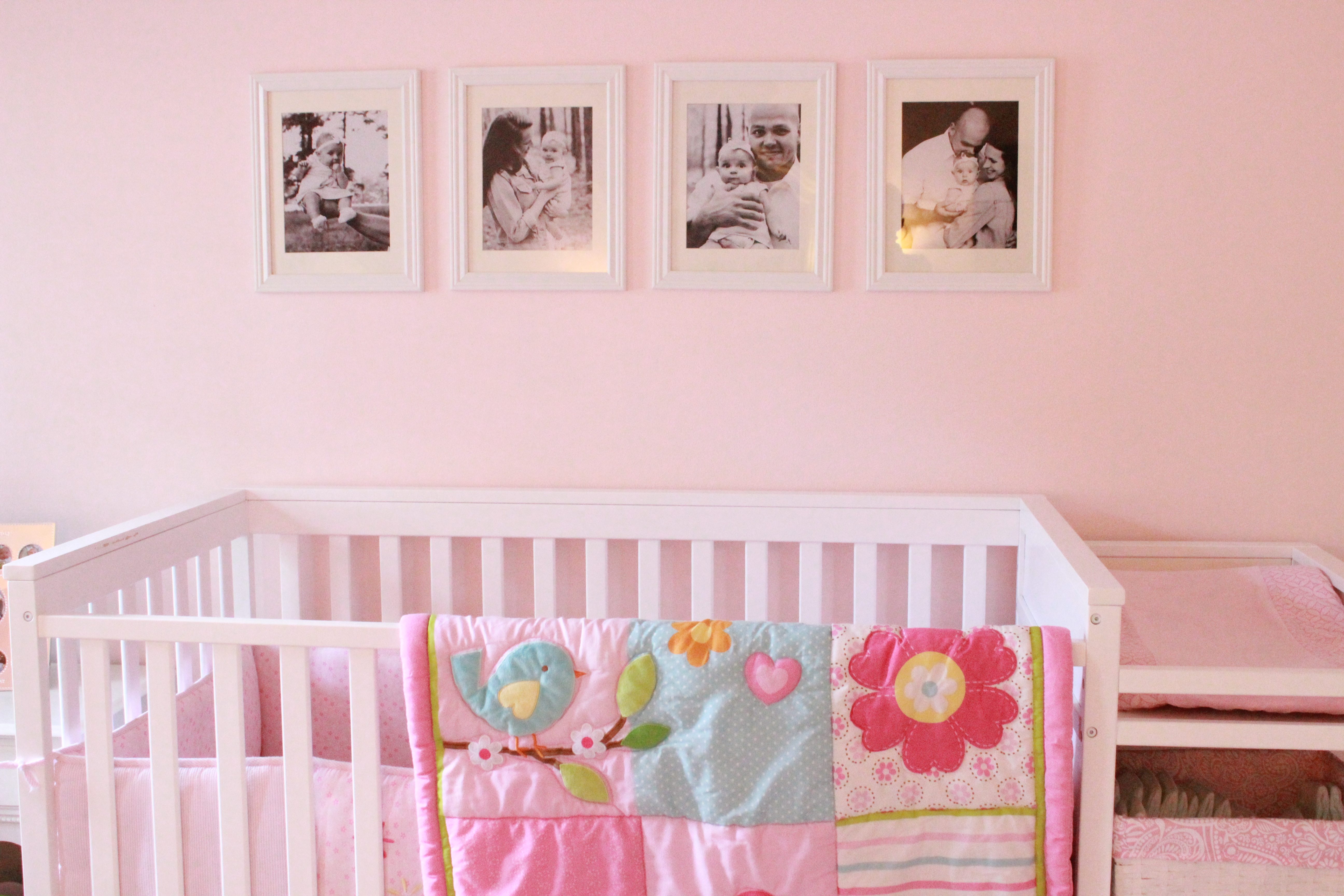 My husband will tell you that he is never painting her room again…because he’s already done it twice! We decided on a darker pink the first time around, and after about a week of that I realized that I did not like that pink…at all. We settled on a lighter, more pastel pink, and I like that a lot more!