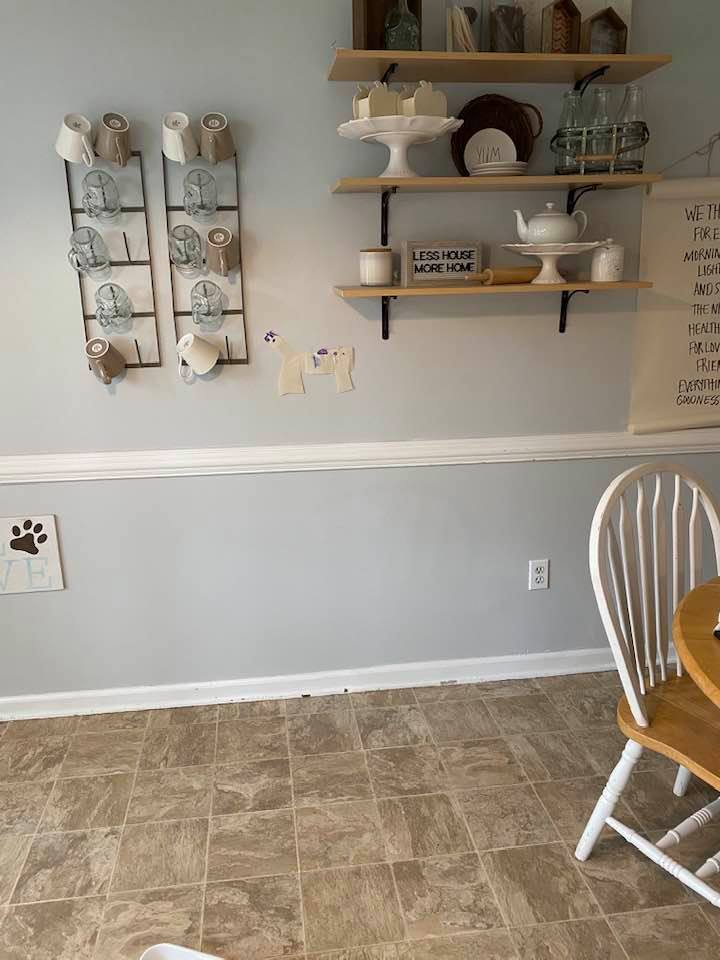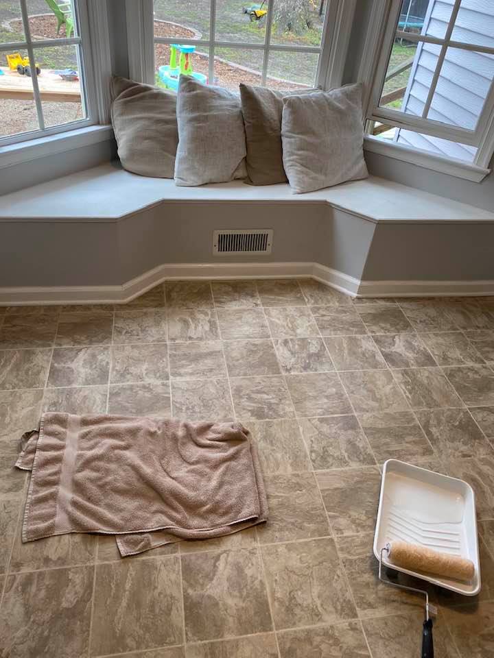 Shortly after our Virginia governor issued a stay at home order, I decided it was the right time to completely redo our kitchen floor. I tried to document each step of the process, but please excuse the quality of these photos! Most of my work time was done after the kids were in bed, so the lighting is less than fantastic. But you get the gist!