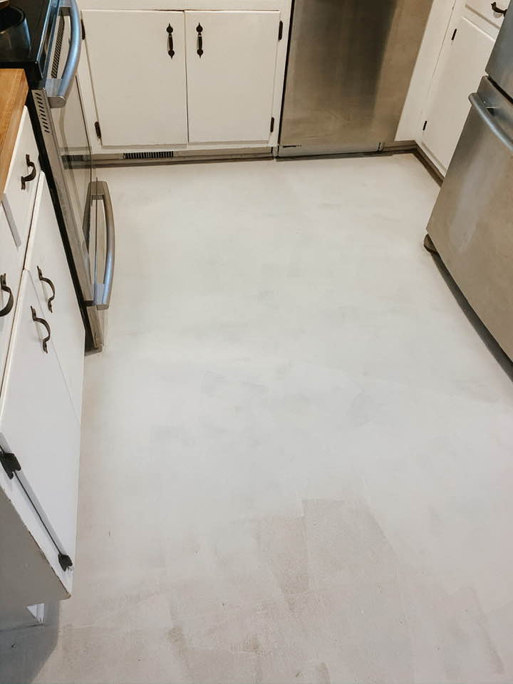 I mopped and vacuumed the floor before I started, and just laid the white paint on.