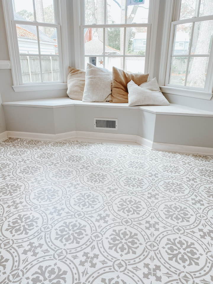 OH EM GOODNESS. Guys, I’m finally getting around to blogging about stenciling my linoleum floors a whopping 8 weeks ago (seriously??).