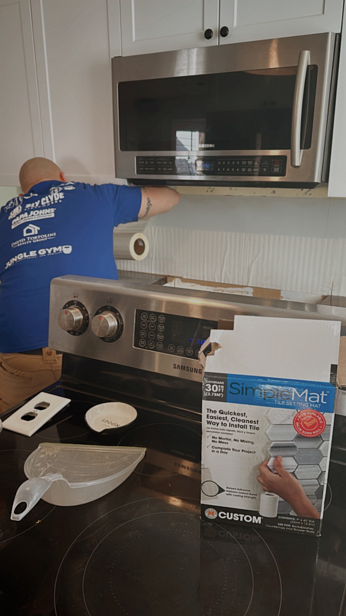So against my dads wishes (lol) we used SimpleMat tile setting mat on the walls before putting up the tile. Let me tell you how EASY this was!